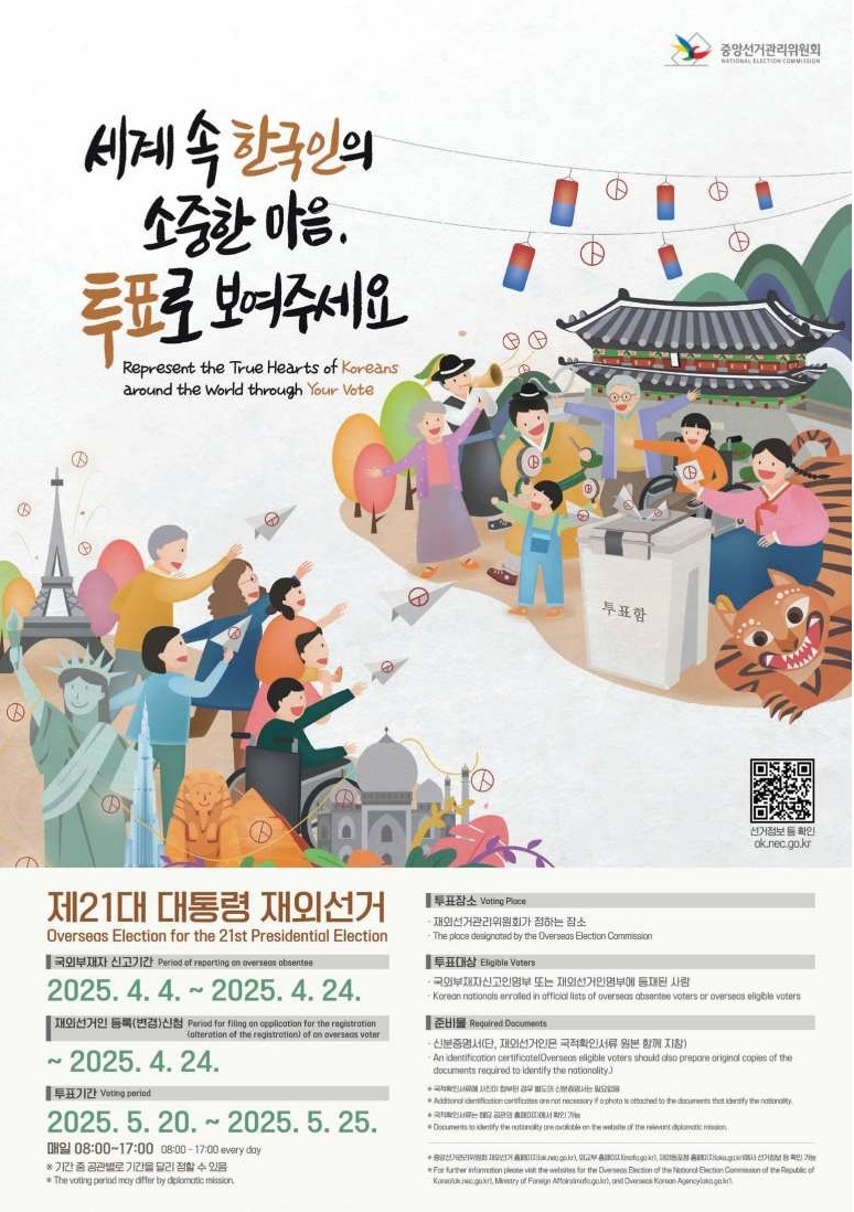 제21대 대통령선거의 국외부재자 신고 및 재외선거인 등록신청에 관하여 다음과 같이 안내하오니 외국에서 투표하려는 사람은 기간 내에 빠짐없이 신고 또는 신청을 하시어 소중한 투표권을 행사하시기 바랍니다.